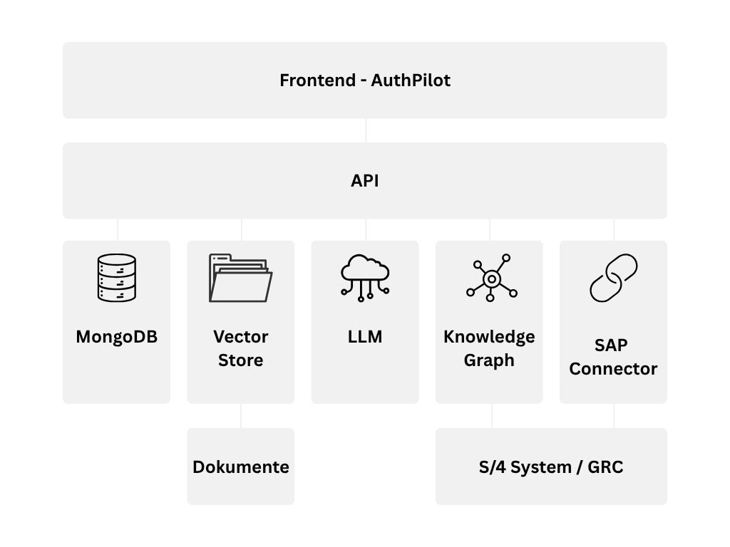 Authpilot kombiniert moderne KI-Technologien mit klassischen Unternehmenssystemen wie SAP, um Anfragen zu Rollen, Berechtigungen und Benutzerzugriffen intelligent zu verarbeiten.